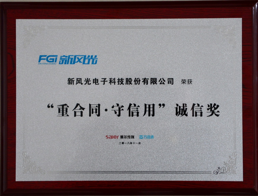2018賽爾傳媒重合同守信用誠(chéng)信獎(jiǎng)