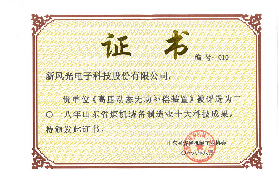 山東省煤機(jī)裝備制造業(yè)2018年科技成果獎(jiǎng)
