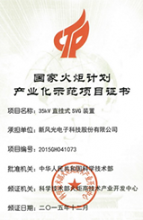 SVG國(guó)家火炬計(jì)劃-產(chǎn)業(yè)化示范項(xiàng)目證書