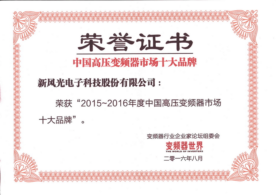 2015-2016 高壓變頻器獲獎