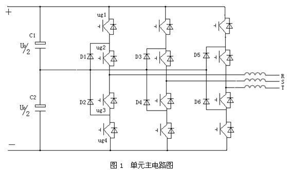 當(dāng)裝置功率大時,需要這樣幾個主電路并聯(lián),并聯(lián)時需考慮均流與環(huán)流及其相位問題,同時采用二極管鉗位的三電平電路需考慮直流端電容中點電位不平衡問題,在軟件PWM波生成電路中尤其注重此點。