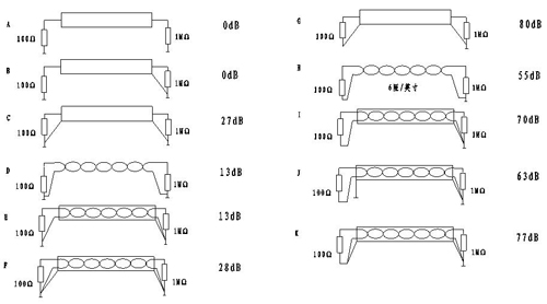 從圖3衰減情況看,A-F的屏蔽效果不好,若必須采用兩端接地,則應采用C或F的形式。G-K的屏蔽效果要好的多,但K一般不建議選用,因為在屏蔽層上的任何噪聲電流和電壓都可作用到信號線上。100Ω(始端)直接接地是不合適的,因為兩端接地為地環(huán)路提供了分流,使磁場屏蔽性能下降。