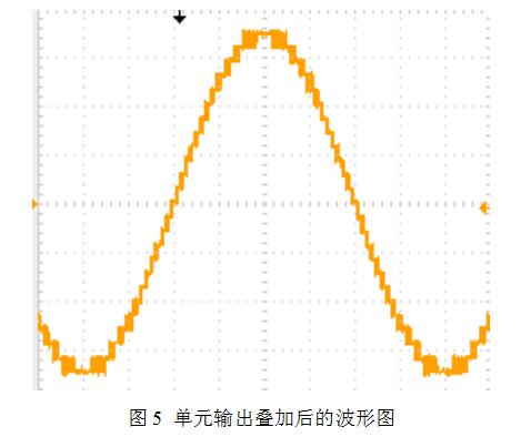 單元鏈接后三相之間進(jìn)行星型連接并通過電抗接入電網(wǎng),通過對(duì)每個(gè)單元的PWM波形的疊加,可得到逼近正弦的階梯PWM波形,如圖5所示為星型連接的單相波形。