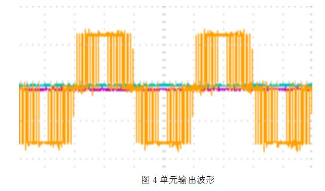 功率單元結(jié)構(gòu)上完全一致,模塊化的結(jié)構(gòu)設(shè)計(jì),使得功率單元可以任意互換,單元的外部接口只有兩個(gè)或四個(gè)輸出端子及兩個(gè)光纖插口,這使得維護(hù)和檢修更簡(jiǎn)單。每個(gè)單元通過IGBT逆變橋?qū)崿F(xiàn)正弦PWM控制,可得到如圖4所示的單元輸出波形。