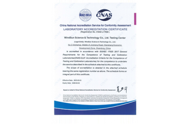 CNAS中國合格評定國家認可委員會實驗室認可證書(中英文)