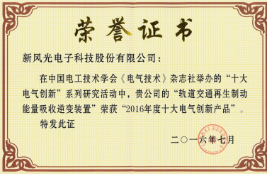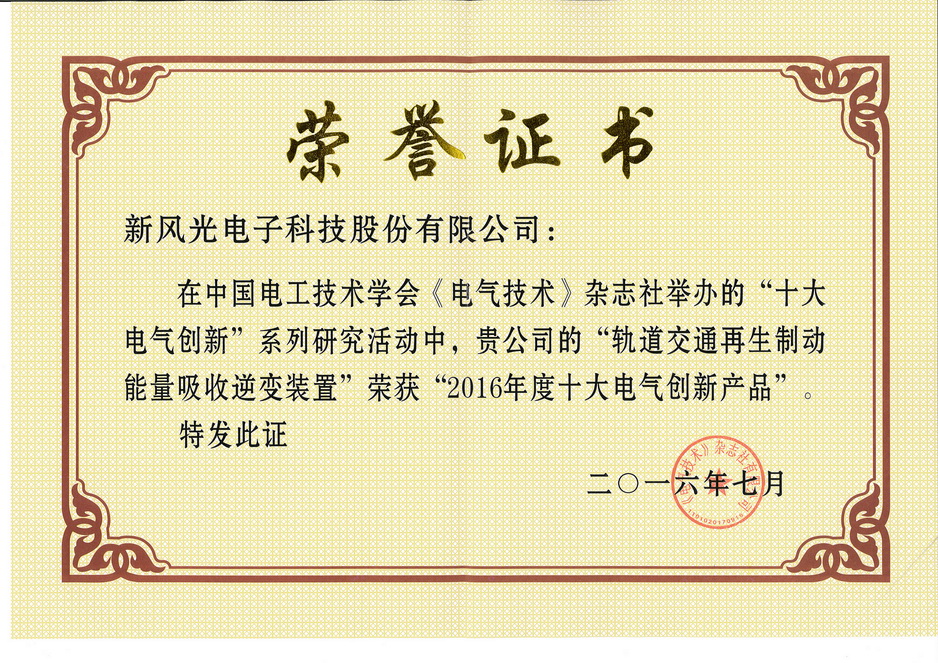 2016年度電氣創(chuàng)新產(chǎn)品證書(shū)
