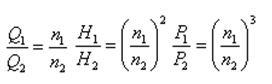 對(duì)離心式風(fēng)機(jī)而言,流體力學(xué)有以下原理:輸出風(fēng)量Q與轉(zhuǎn)速n成正比;輸出壓力H與轉(zhuǎn)速n的平方成正比;輸出軸功率P與轉(zhuǎn)速n的立方成正比;即: