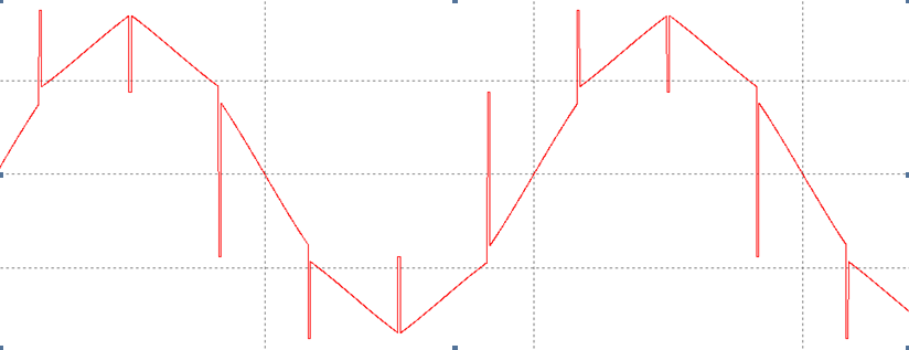 在模擬電路產(chǎn)生信號中,主要還是對線電壓或者相電壓過零點的獲取,在過零點的獲取中常用的是用運放進行過零比較。在反向整流工作中,由于電源的內(nèi)阻存在,在輸入電源上就存在IGBT開通或關(guān)斷時產(chǎn)生的缺口,如圖1所示: